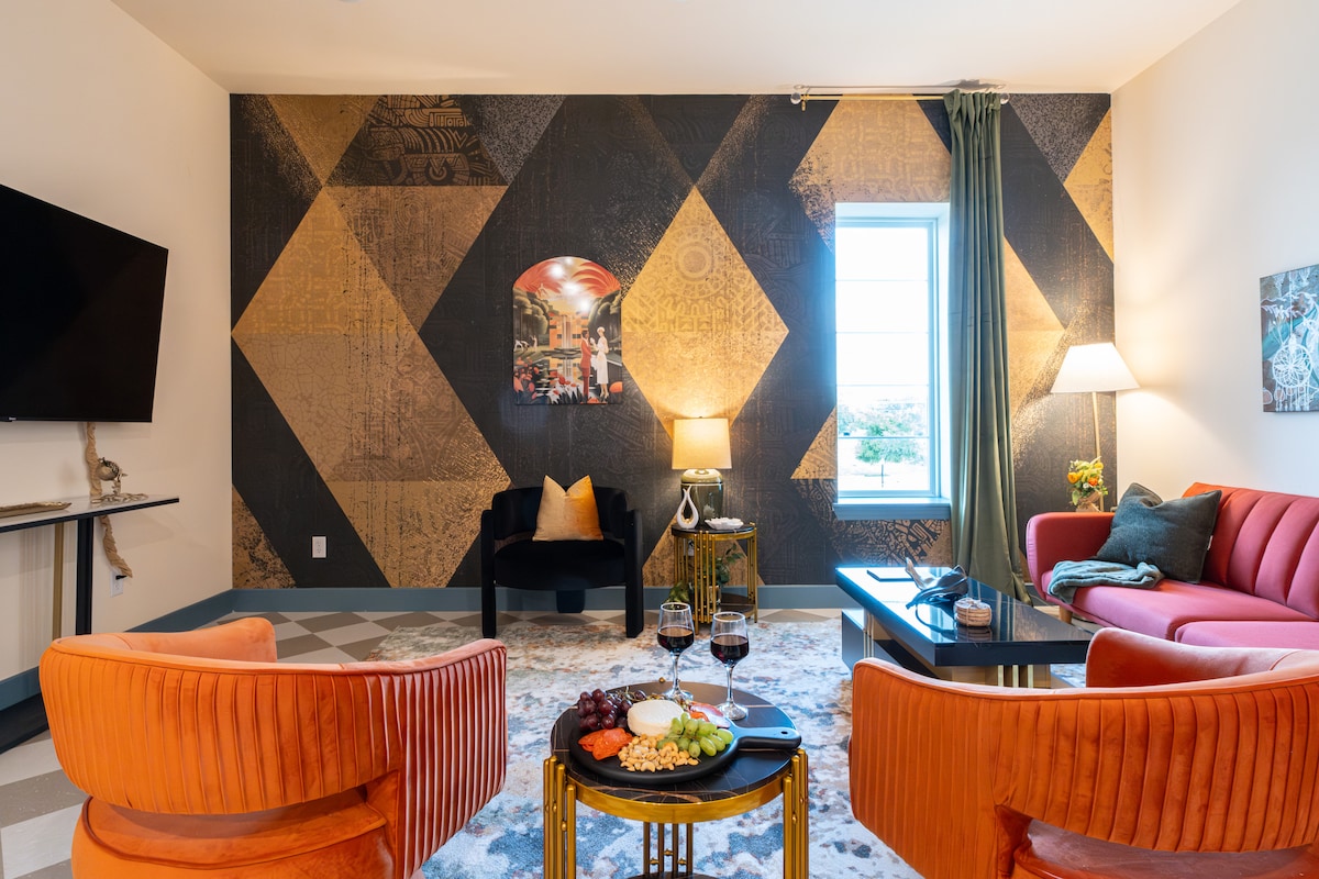 This thoughtfully designed apartment offers a stylish atmosphere, perfect for relaxing after a day of exploring. Enjoy contemporary furnishings, soft finishes, and welcoming touches that make you feel right at home. Whether you’re here for a quick getaway or an extended stay, The Francesca provides the ideal blend of modern convenience and cozy comfort.
