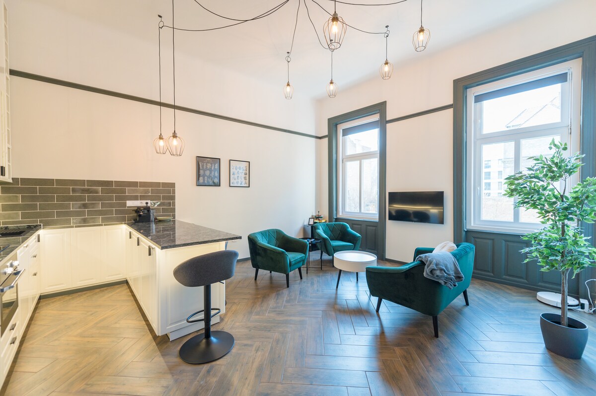 這間翻新的豪華公寓由屢獲殊榮的室內設計師設計和打造,在各方面為您帶來最高標準。 如果您需要舒適而時尚的休息地方,不用再找了。 地理位置完美,位於著名的大市場大廳後面的安靜街道上,距離多瑙河畔和自由橋僅幾步之遙,地理位置無與倫比。 步行4分鐘即可抵達地鐵3號和4號站以及「觀光」電車2號站。