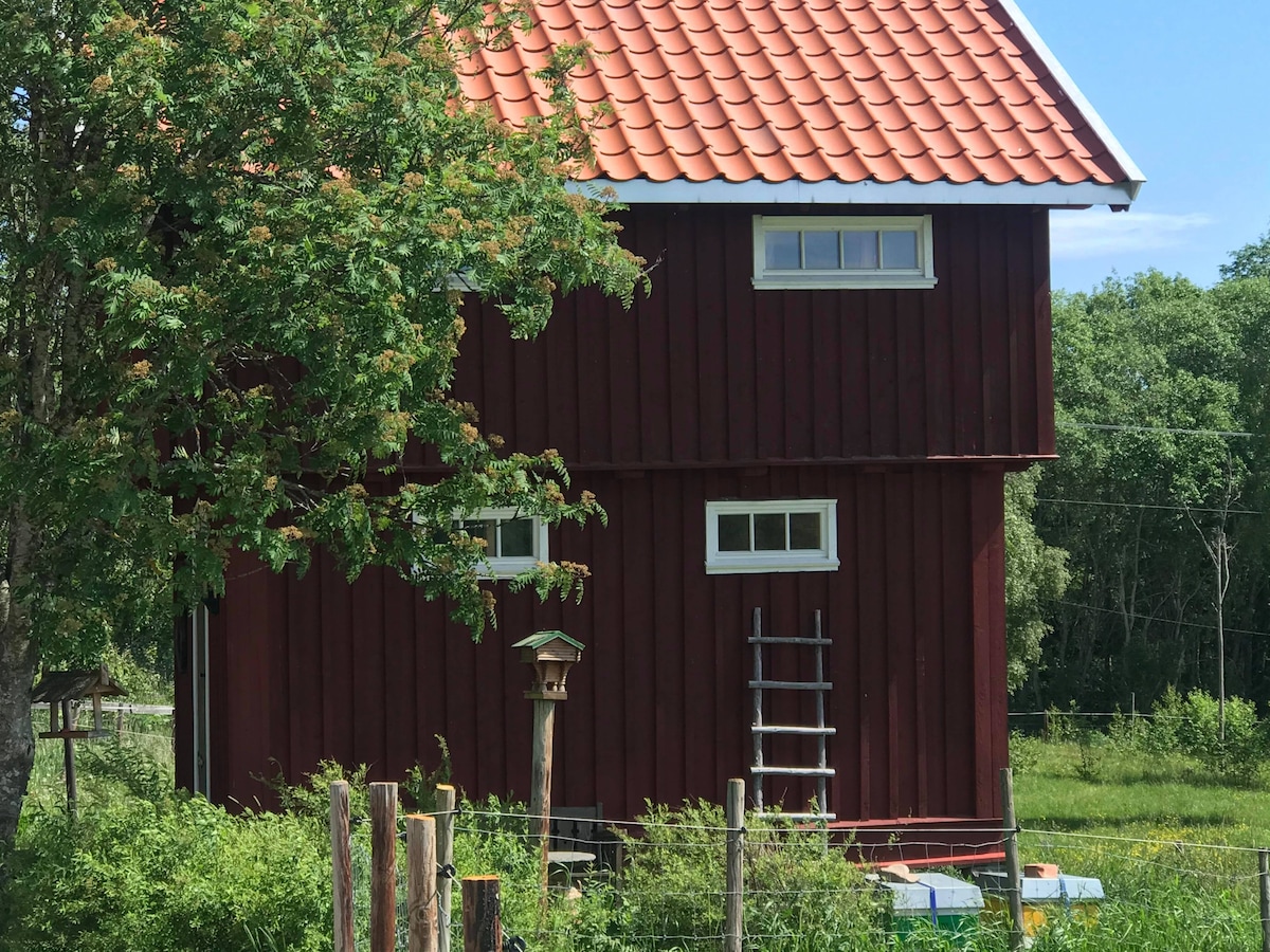 Bo i et ombygd stabbur og nyt idyllen i høyden over Mjøsa. Stabburet står på et småbruk som nå kun huser etpar hester og katter. Stabburet består av to etasjer som er forbundet med en relativt bratt trapp. 1. etasje består av kjøkken og bad, mens kombinert stue og soverom med dobbeltseng og sovesofa er ovenpå. TV er innlagt, mens wifi finnes ikke pr dags dato. Come and live in a transformed storehouse on a small farm. The house contains two storages that is combined with rather step stairs.