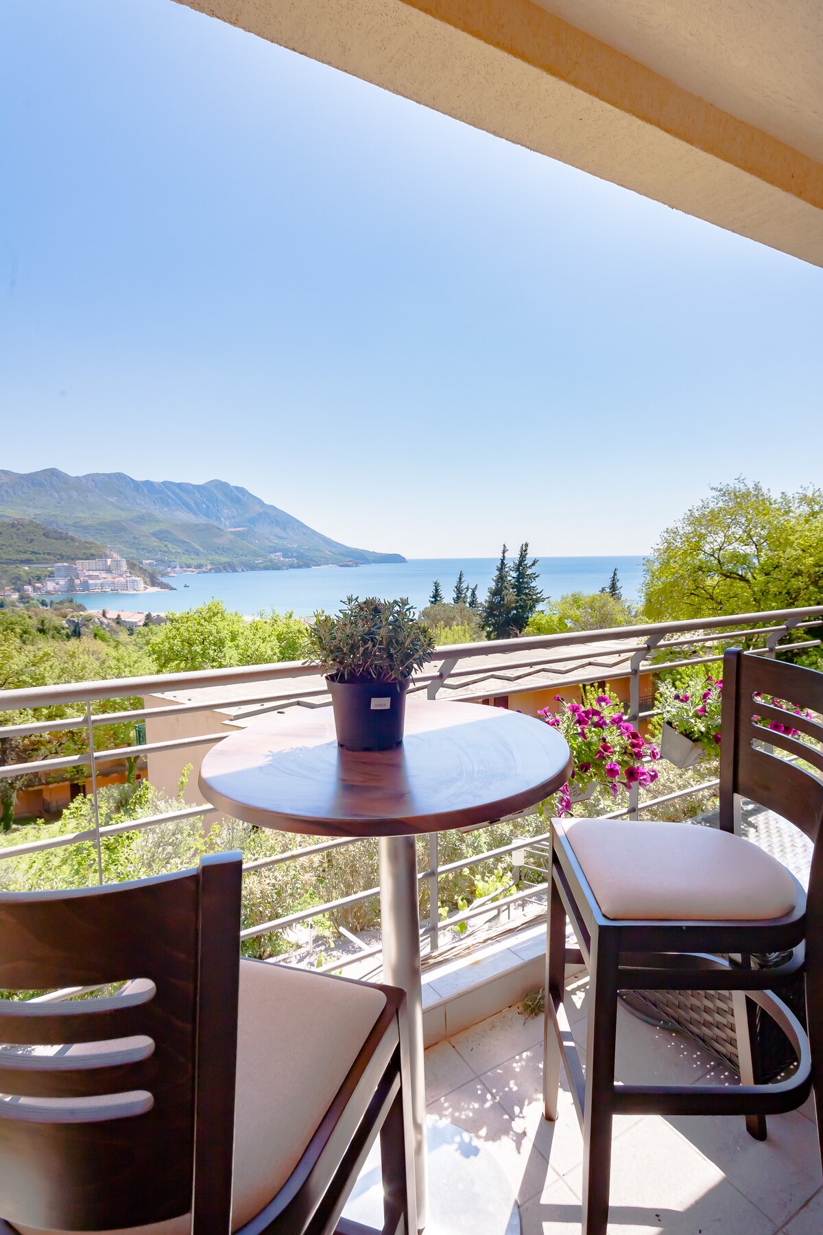 Experience refined comfort with the whole family—our space offers the perfect blend of luxury design and a true beachside atmosphere. Unwind with a stunning 180 degree view of the Adriatic Sea, 4-minute stroll to the famous Becici beach and right by a rich variety of cafes, restaurants and supermarkets. ✔ Spacious private balcony with 180* sea view ✔ Free private parking ✔ 72 sqm, 2 bedrooms ✔ 4 minute walk to the beach ✔ Infinity pool ✔ Beauty salon and restaurant on-site ✔ Elevator access