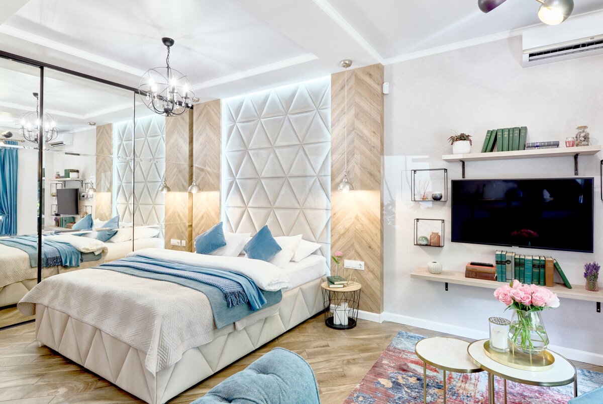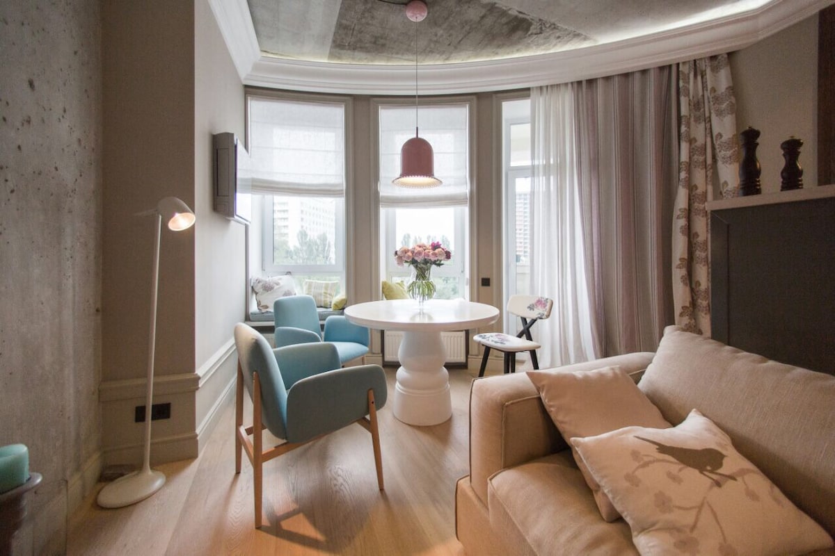 漫步在開放式的單間公寓中,探索書架上的書籍和當代歐洲藝術品,打造真正獨特的空間。這是一個鼓舞人心的城市隱藏處,是探索歷史悠久城市的理想基地。單間公寓位於基輔市中心。 單間公寓設備齊全,所有設備均可供房客使用。 如需租用拍攝和廣告,請在預訂前與房東聯絡-適用不同的價格。我們不出租用於派對。