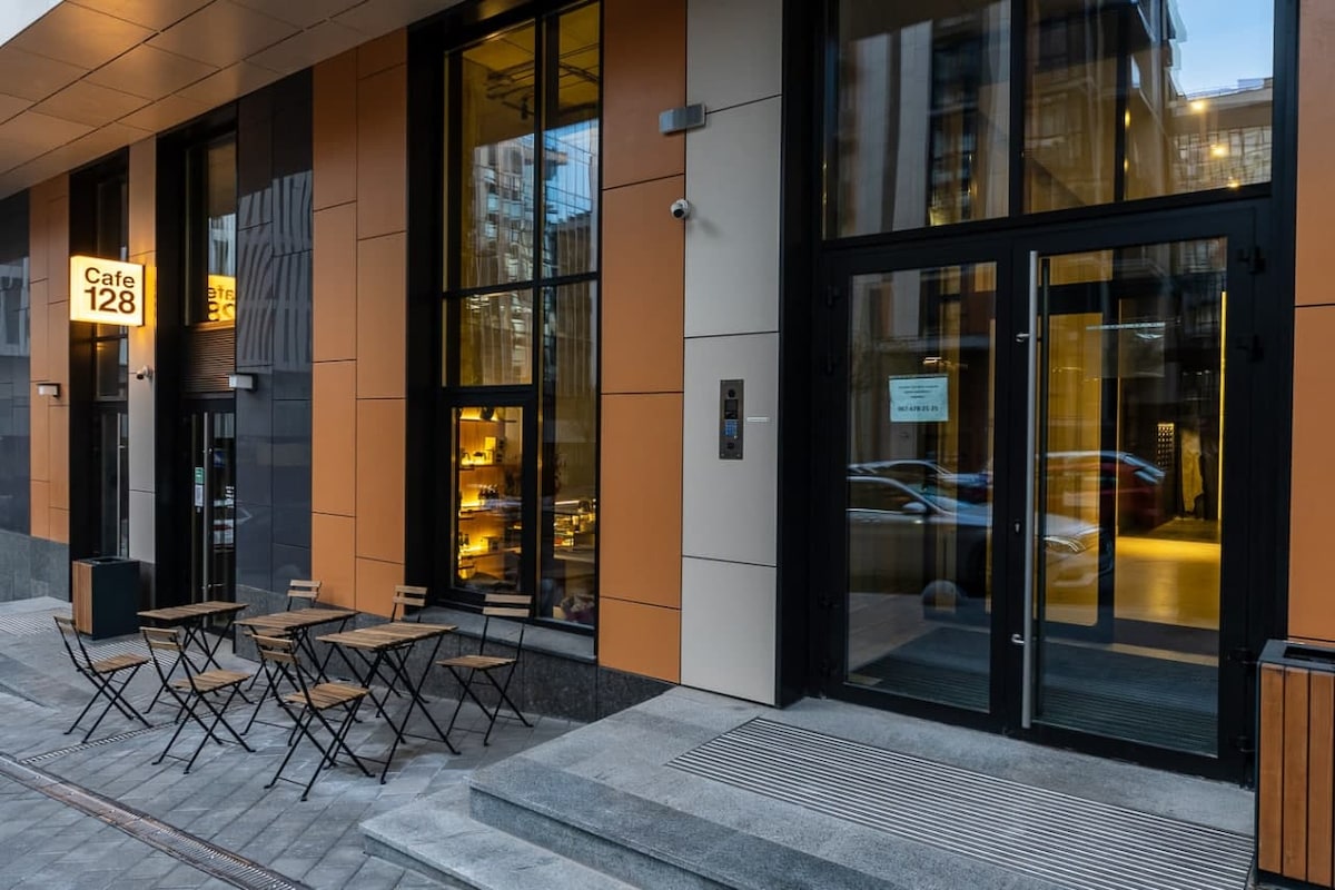 步行2分鐘即可抵達公寓,地鐵站在空襲期間可作為避難所。 乾淨舒適的公寓,景觀非常好。位於英雄廣場。交通便利。附近有許多不同的酒吧和餐廳,距離Gulliver購物中心、Taras Shevchenko公園、Bessarabs 'ka廣場、Khreschatyk街僅幾分鐘路程。 高速網路(1 GB)、有線電視、空調、LED電視、陽臺上可以吸煙。