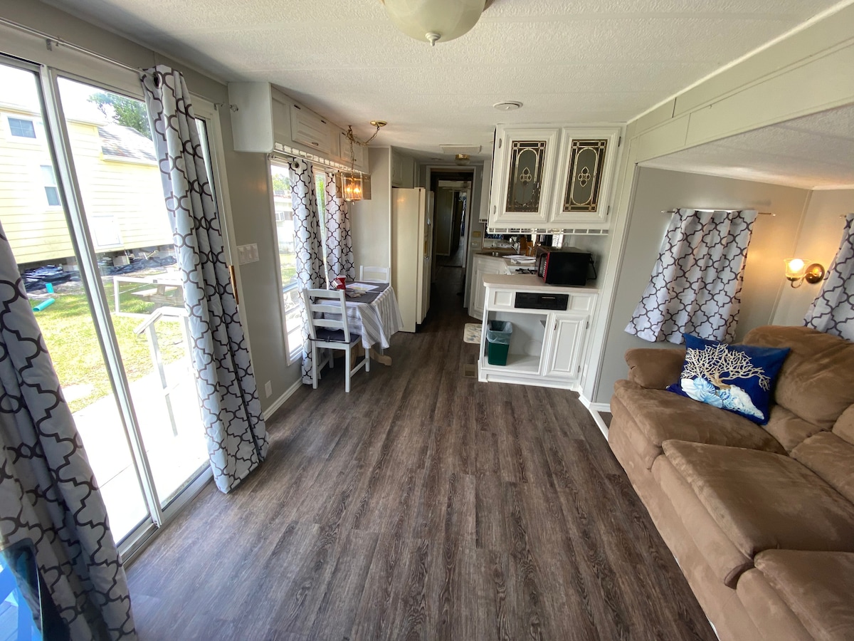Brand new private home in Mill Creek RV park. 1 bedroom home with queen bed and additional pull out sofa. Play yard/crib available for 5th guest. Full kitchen, washer/dryer in home. Enjoy a central location backing onto a green space with pond for peaceful privacy on the back deck. Full access to all Mill creek amenities ( pool, gym, playground, corn hole, pickle ball, putting green) 2 smart TV’s in unit 1 mile to Walmart 15 mile to Disney World & Universal 13 mile to Orlando airport