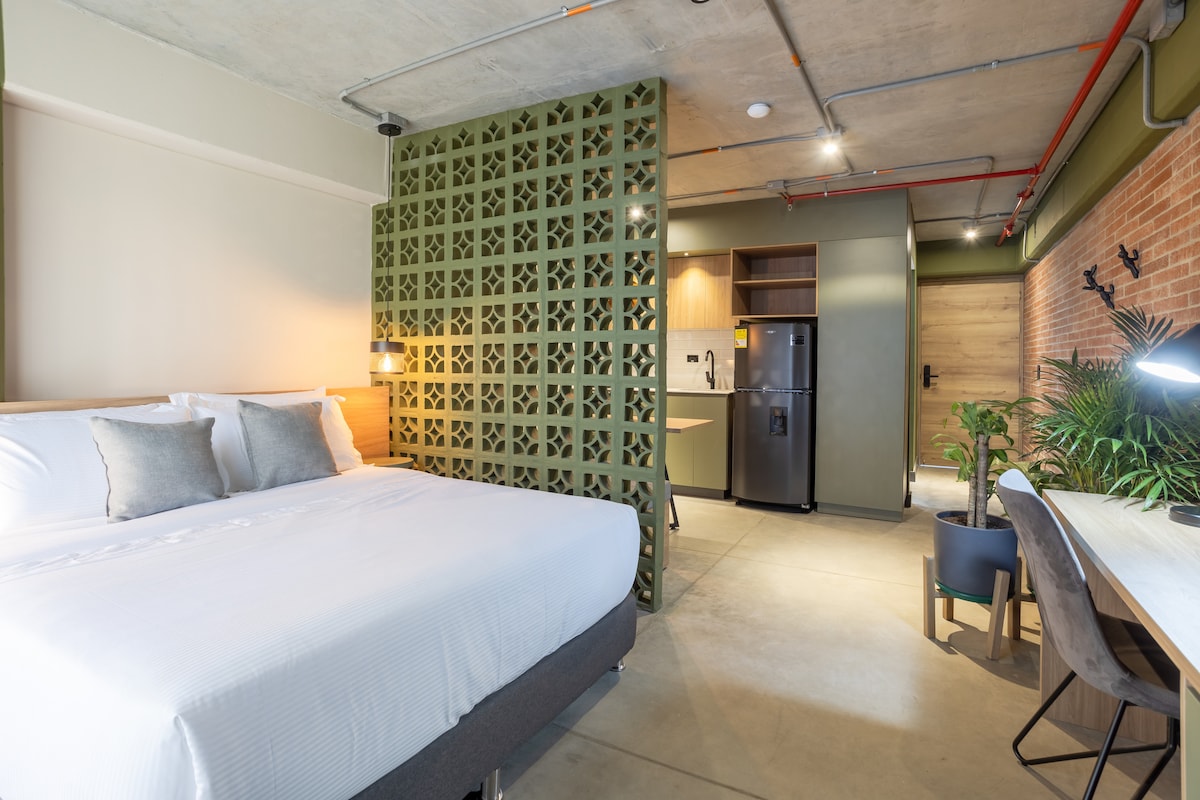 Increíble y cálido Apartaestudio con rooftop