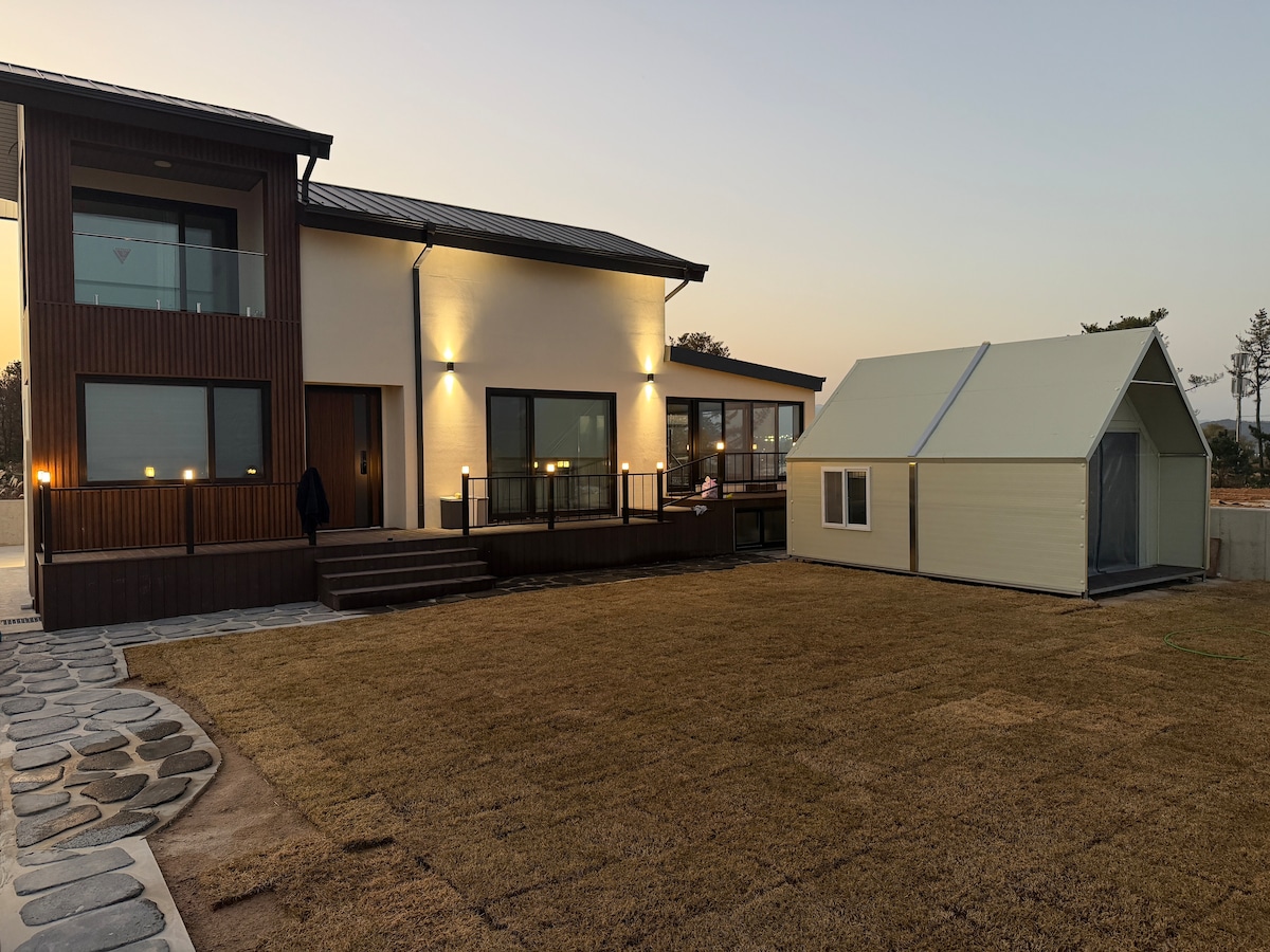 ※提供多種兒童用品 - 兒童電動車、滑梯、戶外泳池、玩具、棋盤遊戲 ※提供額外的床上用品 ※ 特殊事項 - 1、2樓有洗手間,提供奶瓶消毒器 ※ 1樓 [室內溫水溫泉泳池] 寬 5.3 公尺,長 3.2 公尺,最大深度 1.2 公尺,提供嬰童救生衣、遊泳圈(免費溫水) [室內蒸汽房(韓式蒸汽房)] [室內燒烤區] 電動烤架(額外 20,000 韓元)、燒烤桌、烘乾機、水槽、兒童椅 [廚房]冰箱、淨水器、咖啡機、電磁爐、微波爐、電鍋、電視 ※ 2樓 [臥室1] 1張K床、1張SS床、沙發、電視、桌子、遮光窗簾 [臥室2] 低床 (SS + Q)、玩具、吹風機 [陽台] ※戶外 [露台和草坪墊]彈跳床、鞦韆椅、戶外桌和遮陽傘 [情感帳篷]兒童遊戲套裝、情感燈泡套裝 [停車] 房間牆前可停2輛車 ※ 額外費用 超過2人每人2萬韓元(不包括24個月以下的嬰兒)