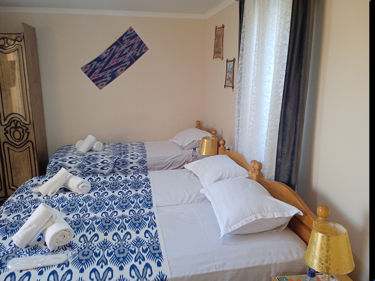 這間寬敞舒適的旅居距離布哈拉的歷史中心只有幾分鐘路程。 配有冷氣睡房、明亮的客廳、全套廚房、寬敞的走廊以及獨立的浴室和廁所,非常適合家庭和朋友入住。 提供免費泊車、快速WiFi和輕鬆自助入住/退房。 最多可容納6位旅人( 5張床+沙發床)。 步行10分鐘即可抵達舊城區,靠近市內最大的商場、咖啡廳、市集和超市。
