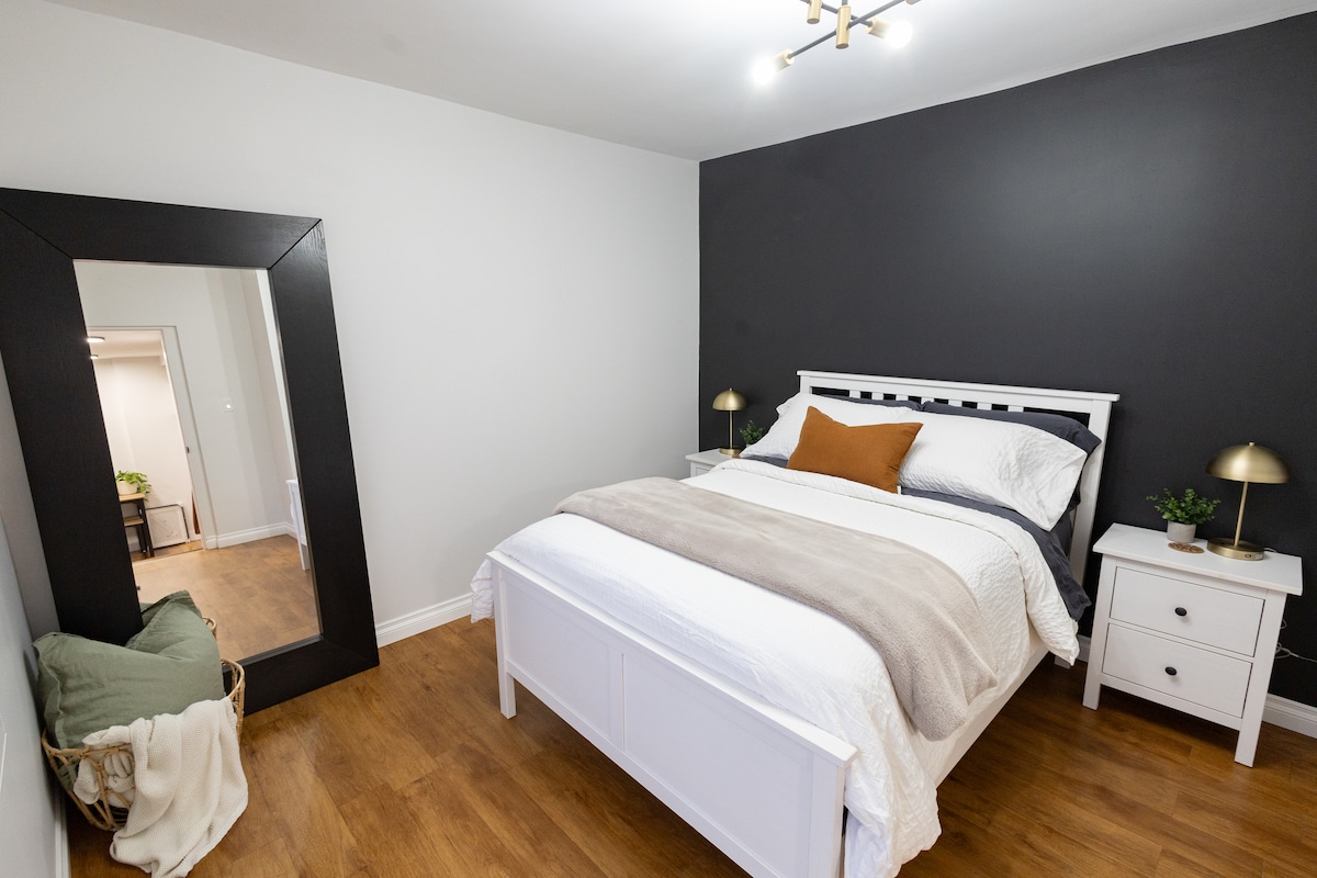 歡迎來到你的家外之家,一個2間睡房的Airbnb! 享受全套廚房、帶淋浴間的浴室,以及套房內的洗衣機和烘乾機,方便您使用。 位於一條安靜的街道上,方便前往外面的公共遊樂場,非常適合家庭入住。 就在街道下方,在美麗的鴨子池塘周圍悠閒地散步。 舒適、乾淨和迷人的住宿!