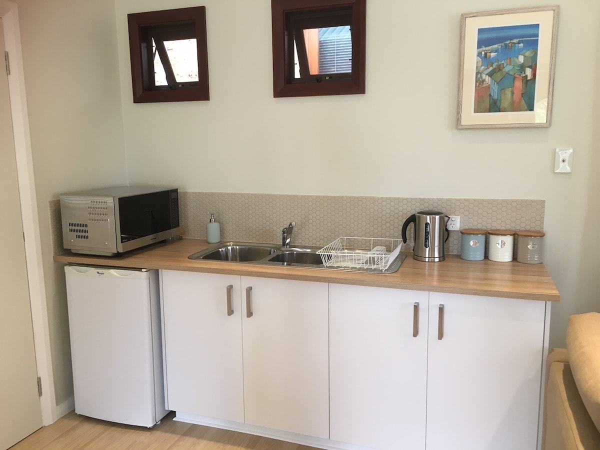 在Yallingup Hills的完美情侶(或單身人士)度假勝地放鬆身心,聽到鳥鳴聲。 浴室非常寬敞,配有雙淋浴頭/洗手盆,以及一個大浴缸。 巨大的步入式長袍非常適合為晚上外出做好準備。 臥室有一張新的大雙人牀。 在陽光明媚的起居區放鬆身心,欣賞美景。 享用早餐和咖啡、閱讀書籍或在私人露臺上欣賞日落。 在小廚房裡,您可以自給自足。 袋鼠每天都會來。