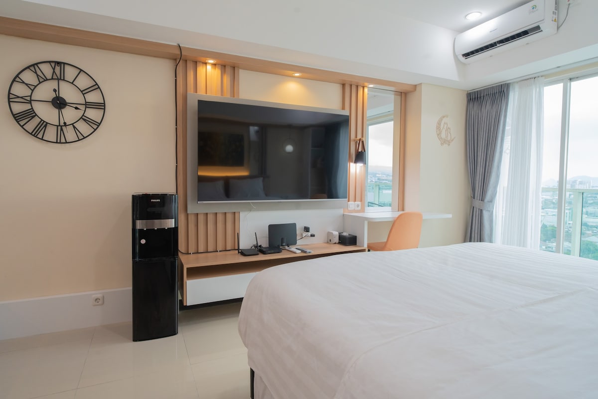 入住這間位於Parahyangan Residences 10樓的時尚單間公寓,沉浸在萬隆充滿活力的中心地帶。 享受設備齊全的廚房、高速Wi-Fi和配備Netflix的50吋智慧電視等現代化設備與服務。 盡情享受度假村設施、無接觸入住和附近的便利設施,享受完美的居家度假、度假或在家辦公的體驗。 現在提供反滲透飲用水、食物垃圾處理和新洗衣機。