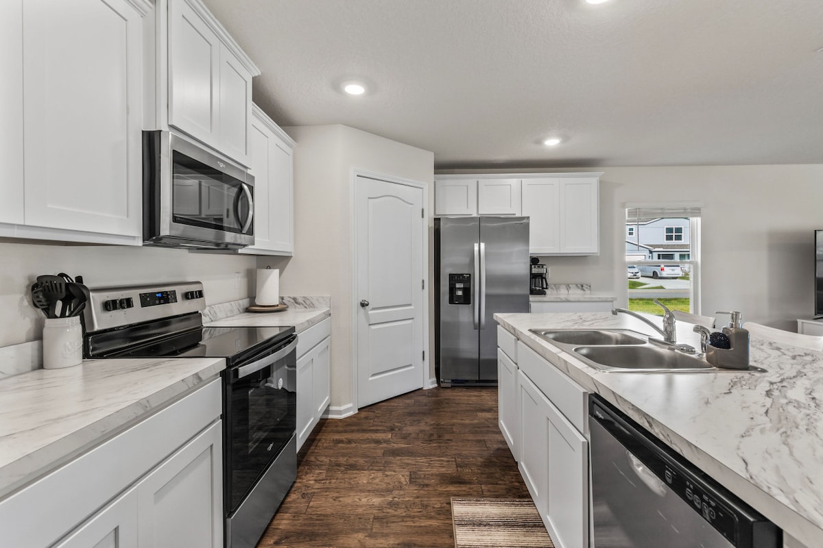 寬敞的2BR/2BA房屋,設有客廳、全套廚房和全圍欄後院,非常適合家庭和寵物主人。 步行即可抵達一個設有遊樂場、水上樂園、籃球和網球場的公園,附近還有狗公園。 海灘距離免費的吊床橋通行證僅幾分鐘路程。 提供運動裝備、沙灘椅、雨傘、玩具和日常必需品。 Island Walk購物和餐飲就在附近。