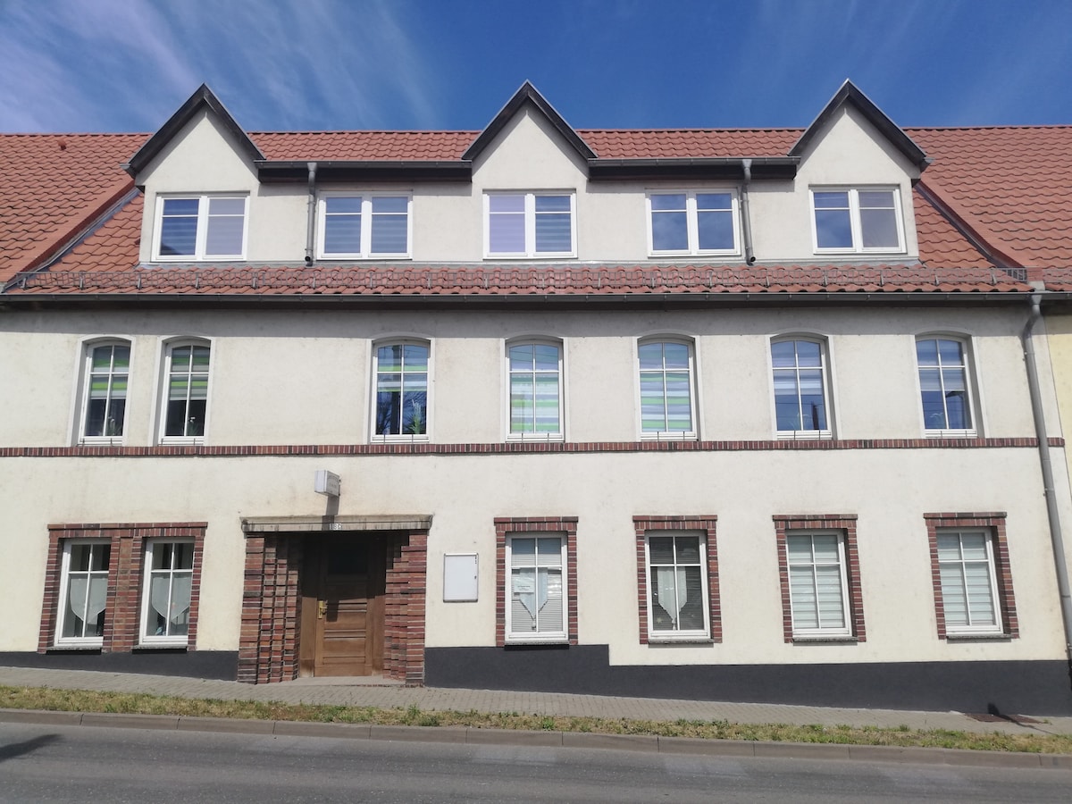 美麗、設備齊全的45平方公尺大型屋頂公寓,位於綠色安靜的Halle-Dölau區的Dölauer Heide邊緣。 公寓位於二樓/閣樓我們美麗的,歷史悠久的別墅從1904年。 公寓可容納2位成人睡覺的房客和最多2位兒童。公寓有配有淋浴間的大浴室、起居和睡眠區域、開放式廚房和用餐區域。內置廚房是全新的,家具齊全。