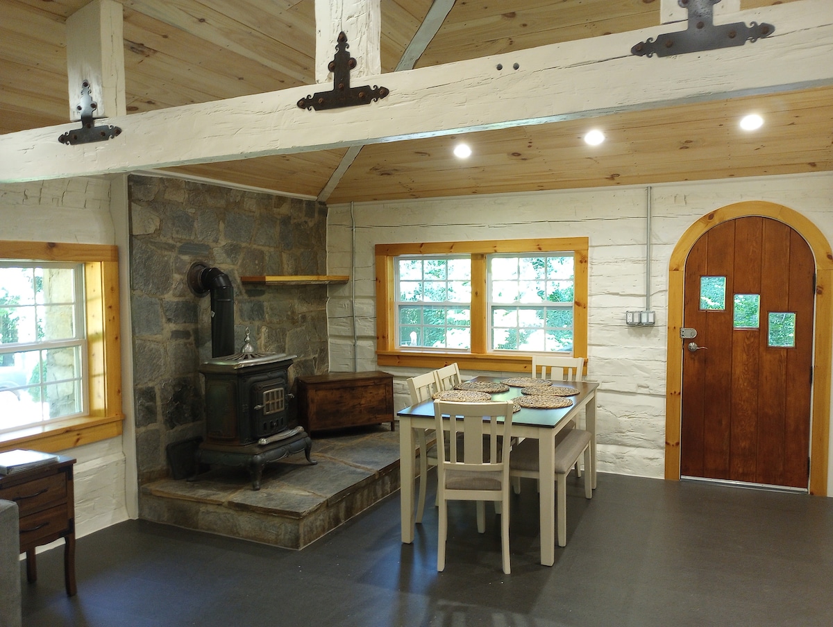 If feeling the warmth of a roaring fire, seeing stars, sunsets and wildlife, and hearing only the sounds of nature is preferred over watching TV then our cottage is for you. The mountaintop timber-frame cottage was built to be a music, art, and spiritual retreat...a place to unwind, read and relax. Yet we are only fifteen minutes from civilization.
