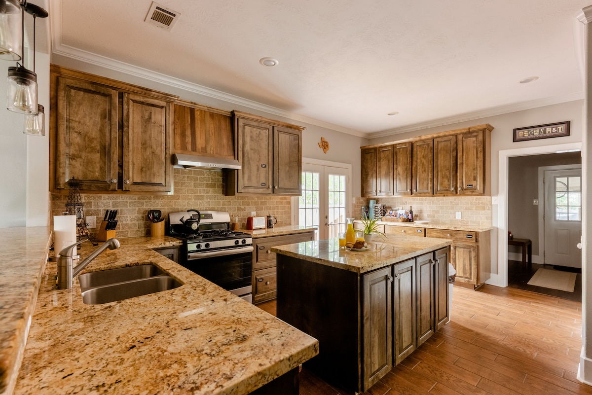 華麗的定制建造4床2浴室房源,有很多空間可供家庭或團體入住。優雅的超大橡木前門通往寬敞的起居空間,配有65英寸平面螢幕和高聳的天花板,以及充足的空間。主臥室是真正的總統套房。巨大的庭院,後面有300平方英尺的露臺,配有60英寸平面螢幕和許多遊戲-乒乓球、桌上足球、飛鏢、洗衣機、玉米洞。美食廚房、配有皮革家具的巨大起居區、壁爐和開放式樓層。