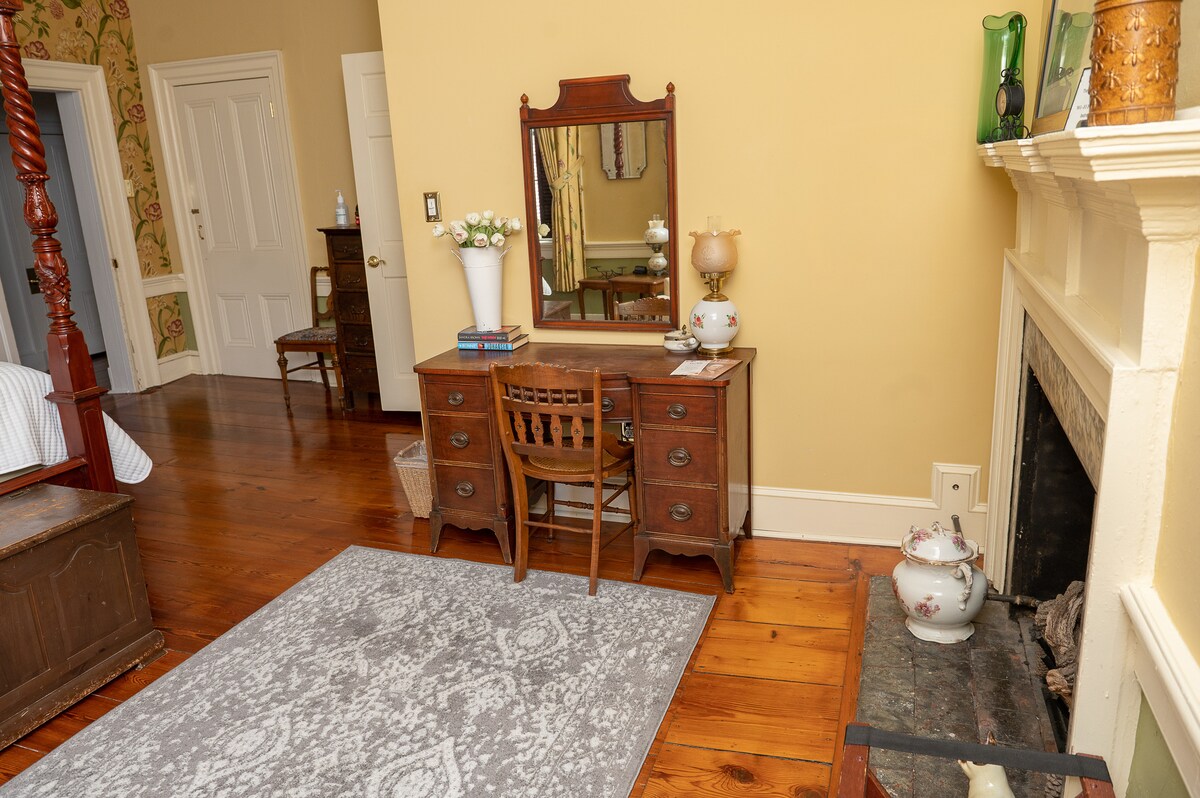 位於二樓。 我們最受歡迎的房間! 這間房間是舒適的四柱大牀,可俯瞰花園。 這間房間有一個正常運作的燃氣壁爐、一個書桌工作空間,以及一個大型步入式淋浴間。 非常適合商務或休閒旅行者,或兩者兼而有之!