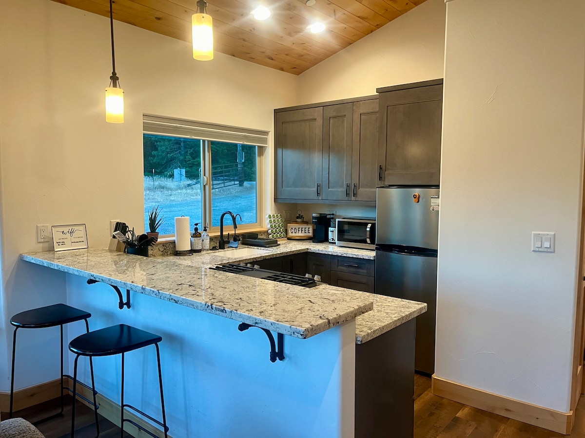 這是一棟570平方英尺的建築,有臥室、浴室和客廳。 它位於美麗的印第安谷。 有很多野生動物,包括鹿、火雞、熊和鵝。 小廚房配有咖啡和茶具、雪櫃、電熱爐、電動煎鍋和微波爐,並應有足夠的工具供您製作簡單的餐點。 我還在露台上提供烤架和一些戶外家具,讓旅人可以在早晨享用咖啡、茶或其他飲料,或在夜間觀賞星空。
