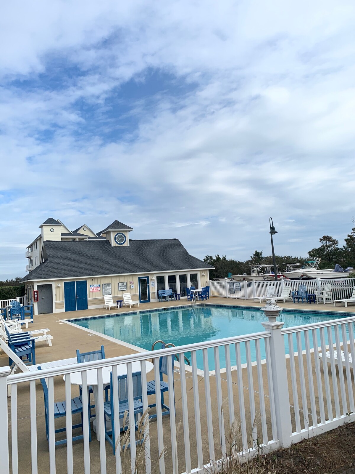 我們改造的公寓是您度假的完美場所。 新家具和地毯大泳池、兩個碼頭、最佳海灘就在對面, Orcacoke渡輪就在您的家門口。 Hatteras Landing商店和餐廳就在隔壁。 您可以在附近租用高爾夫球車、自行車、皮劃艇、SUP或包船釣魚。 加大雙人牀和雙人沙發牀可供4人入住。 廚房配有新電器,包括對流烤箱,可滿足您的所有烹飪需求。一樓泳池邊! !