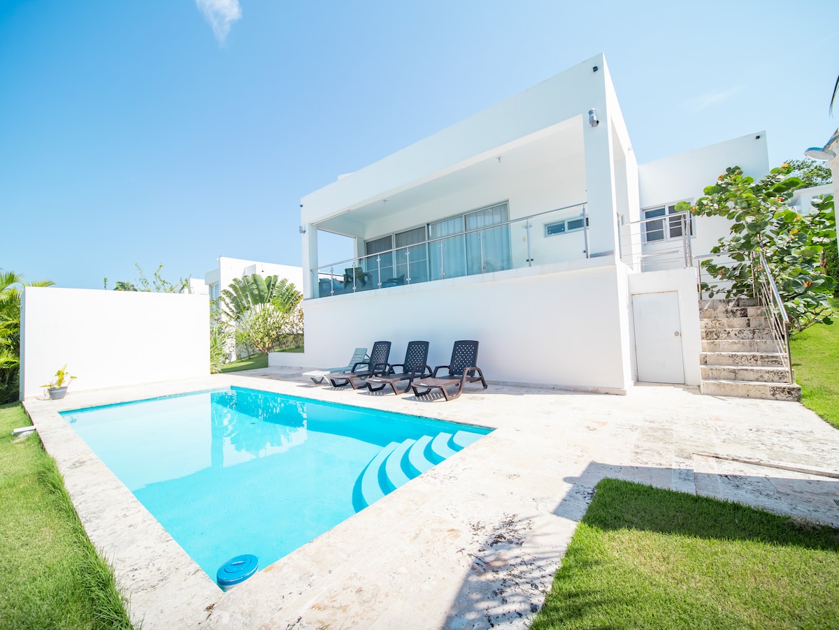 棕櫚島度假屋(🌴 Palm Escape)–你的時尚私人別墅,步行10分鐘即可抵達Encuentro海灘! 享受設計精美的現代別墅,別墅配備私人恆溫泳池(可應要求提供)、鬱鬱蔥蔥的熱帶花園、遮蔭露台、全套空調、智慧電視、設備齊全的廚房、戶外燒烤設施,以及由多明尼加著名藝術家創作的精美定制壁畫。位於安全的門禁社區,提供24小時保安服務。 非常適合尋求舒適和加勒比魅力的情侶、家庭或朋友。 💦☀️