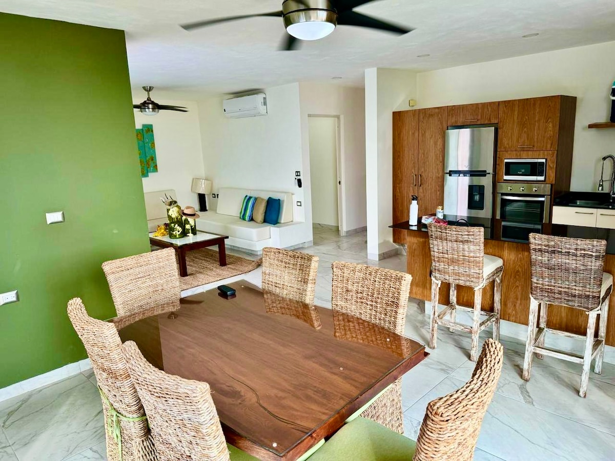 美麗的海濱房屋。 它有4間臥室(樓上3間,一樓1間) ,每間都有空調,大型開放空間,有客廳、餐廳和全套廚房。 這裡還有遊泳池、chapoteadero、palapa、hamaquero和停車場。