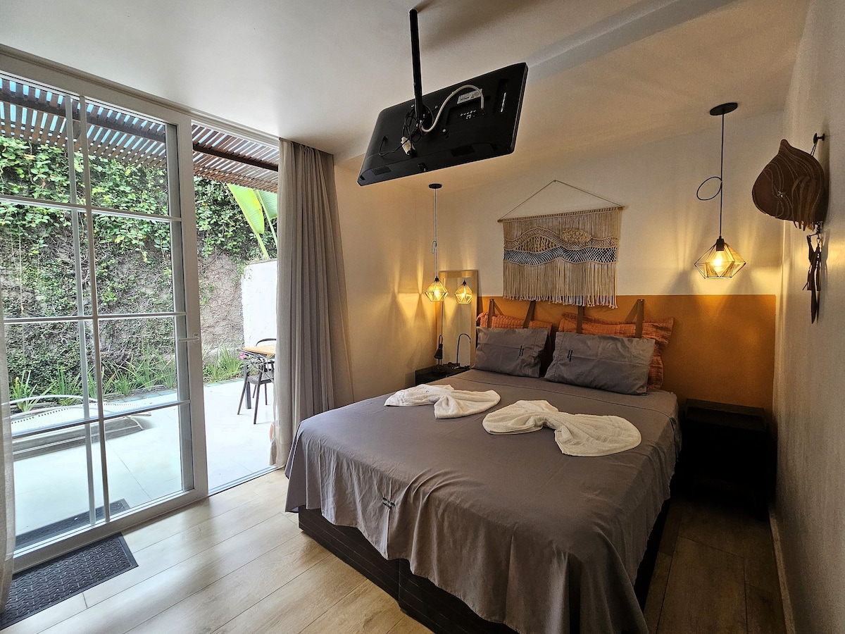 單間公寓,裝飾舒適,專為短期或長期住宿而設計。非常適合情侶、獨自旅行的人、休閒/工作或帶孩子的家庭。最多可容納3人,配有雙人床和輔助床,可舒適容納一名兒童或體重不超過75公斤的成人。 在中心區域,可輕鬆前往若昂佩索阿的主要景點,Apê距離大海約1公里,位於安靜的街道上。 我們在大樓內有私人停車位