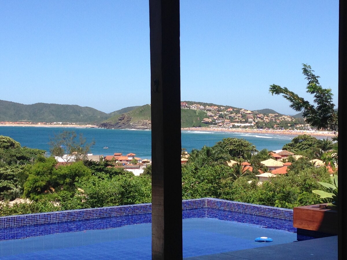 Bela casa com vista deslumbrante para Geriba.