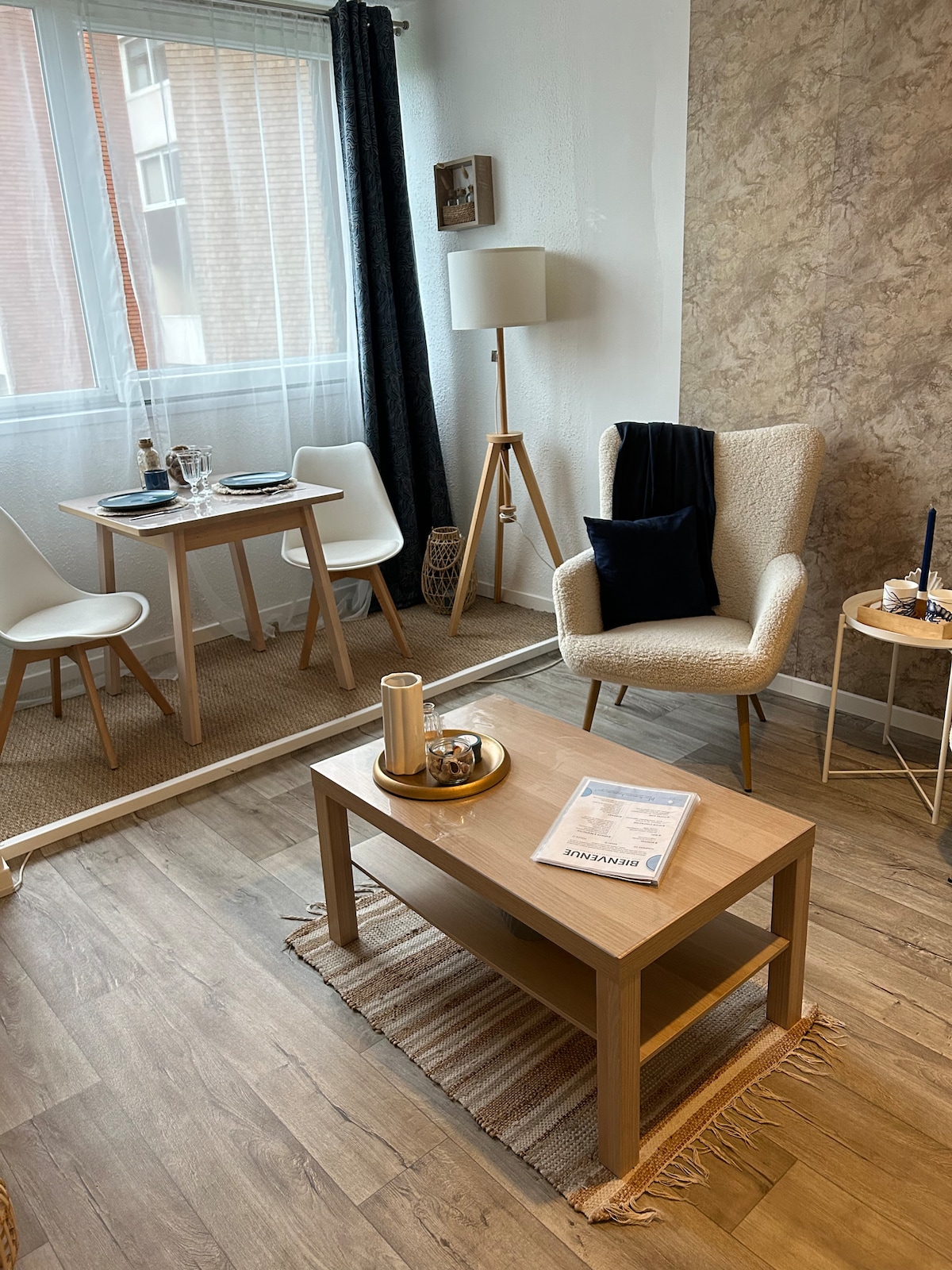 ✨🐚 Un cocon chic pour une escapade à deux Venez vous ressourcer dans la séduisante ville de Cabourg, station balnéaire iconique de la Côte Fleurie et laissez-vous charmer par l’ambiance Belle Époque et sa promenade Marcel Proust qui vous permettra de contempler la mer 🌊. Situé à 1,2 km de la plage, au cœur d’une résidence calme et sécurisée avec gardien, ce petit appartement de 28 m2 bénéficie d’un intérieur cosy et élégant, décoré dans un style bord de mer chic.