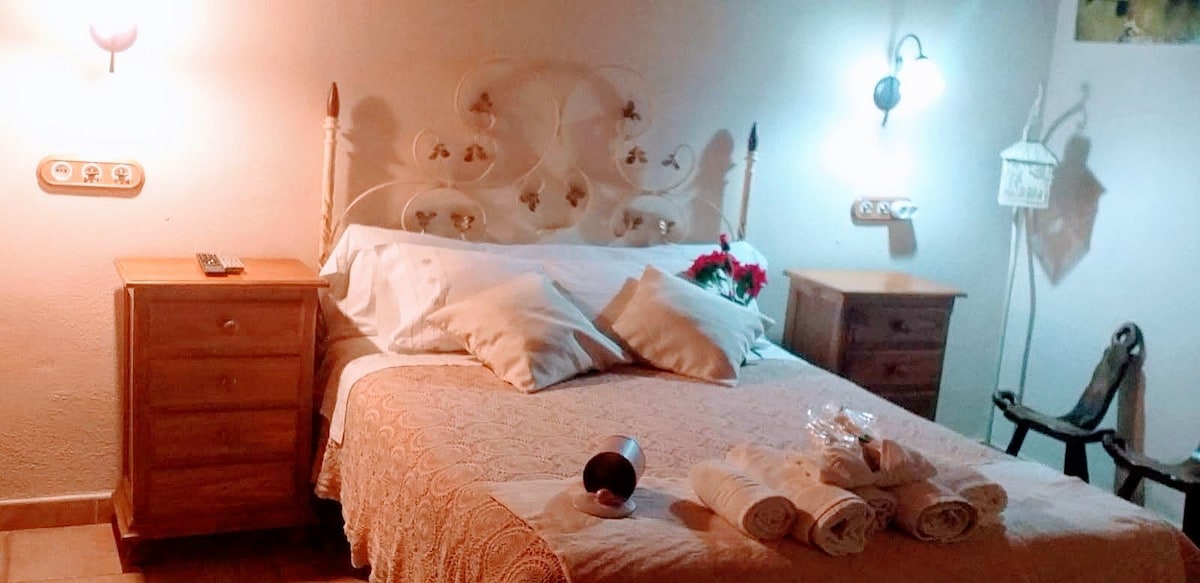 Mi alojamiento esta en Monfrague Torrejon el Rubio Caceres Extremadura rodeados de naturaleza es la planta alta de la casa rural entrada independiente de la planta baja cada habitación tiene su pequeño baño pero completo..televisor. secador de pelo y wifi