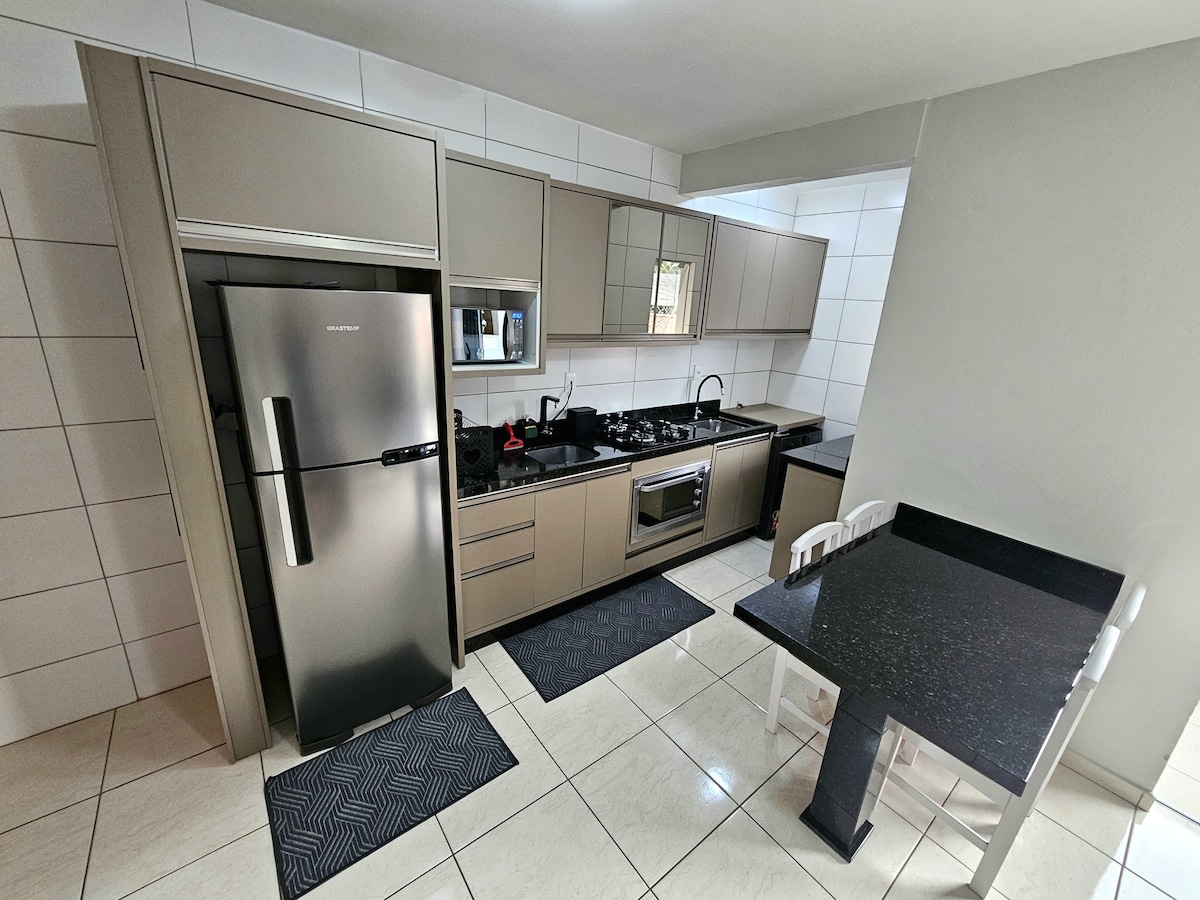 ***整套公寓 ***大樓內有私人室內停車位 網路有線電視。 通風良好的房間、空調、風扇、陽臺、全功能廚房、電磁爐、冰箱、咖啡機、電烤箱、微波爐、洗衣機和烘乾機、全套廚房用具。距離海邊一個街區,150 公尺,海灘人潮多,沙灘延伸,靠近 Canasvieiras 海灘、Ponta das Canas 和 Brava 海灘,安全安靜的地方。地理位置優越,靠近一切。靠近 Sapiens Park。