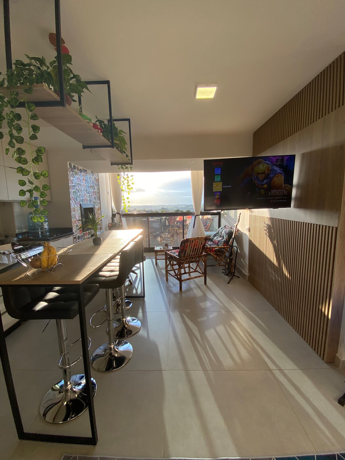 現代化和設備齊全的公寓,景觀迷人,特別是日落。 地理位置極佳,靠近藥店、健身房、UPA、麵包店和水果店。 包括泊車位。公寓提供市場和寵物空間。 我們優先考慮回收,並設有特定的垃圾桶。 客廳和臥室均設有電視,還有任天堂遊戲機供您玩樂。 家庭辦公室設備齊全,配有額外的螢幕、滑鼠墊和遊戲椅。 室內冷氣(冷)和風扇/暖氣。