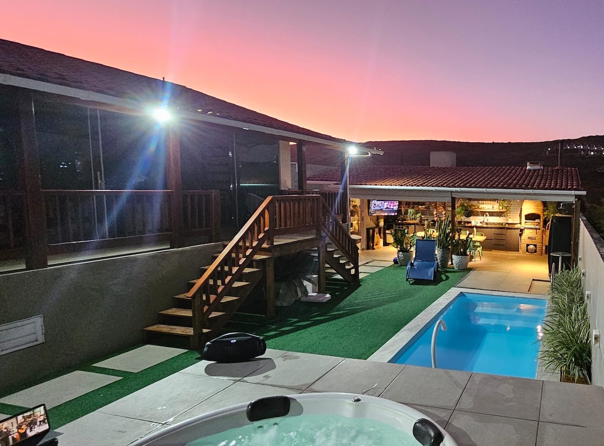 -壯麗的氣候,瑞士風格的鄉村小鎮。 這間獨立屋位於住宅區,通風良好,有Gravatá的微風,有壯觀的私人按摩浴池、花園、美食區、燒烤、木材烤箱和披薩,讓您與家人度過美好時光。 -我們有24小時監控 -距離市中心+ - 4公裏,在那裡您可以找到幾家餐廳、自助餐廳、酒吧、有各種音樂景點的公共市場等。 你亦可以訂購送遞、飲品、食物、水果和蔬菜。