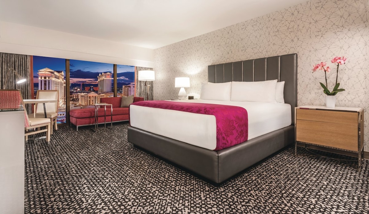 Strip View A modern studio suite located on the 32nd floor with sweeping views of the Las Vegas Strip. Enjoy this oasis conveniently connected to the Palms Resort Casino by skywalk. * Guest must be 21 and over to check-in * Daily housekeeping and extra towels/linens are not provided. Please contact us if you need a daily housekeeping and extra towels/linens so we can arrange this for an additional charge. * A $100/day up to $500 incidentals deposit will be held and returned after check out.