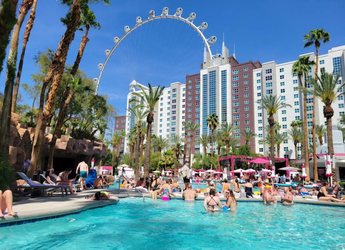 抵達和入住無★★★縫接軌,提供免費代客泊車、行李協助、禮賓和前台入住服務 從您的私人 550 平方英尺的 Signature Studio Suite★★★體驗拉斯維加斯大道的壯觀景色 ★★★ 享受全套飯店度假村設施,無需支付度假村費用(每晚可節省超過 43 美元) ★★★ 前往突擊者隊忠誠體育場或會議中心不到 5 分鐘。 歡迎來到美妙的拉斯維加斯!