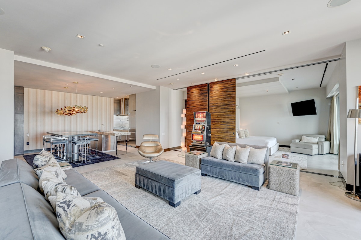 New Suite💫Dreams & Open Balcony Palms Place Luxury Resort Unique Modern and Luxurious ADD my listing to your wishlist by clicking the ❤️ in the upper right corner. (You will get VIP status 🍾 + 🎁 ) Balcony is Open With outdoor table and stools Marble Bathroom Relaxing Rainfall Shower Amazing Jet-jacuzzi Big TV 100 inches Netflix, Hulu, HBO, Disney+, Prime Video, ESPN Electric cooktop stove Dishwasher High Quality Coffee Maker Vitamix Blender