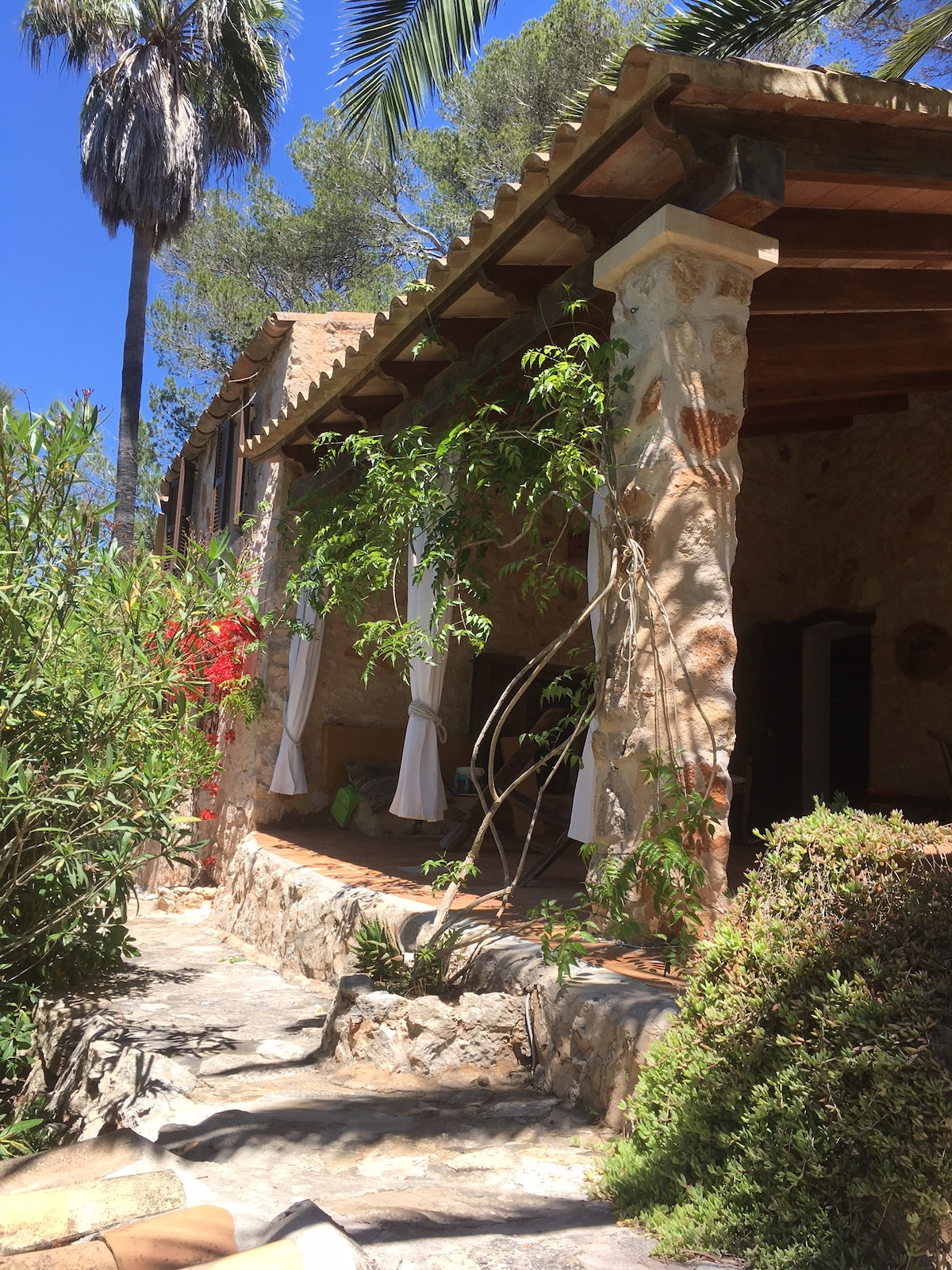 Can Yuca is a beach house with a bohemian and chic style. It is a little haven of peace just a stone's throw from the magnificent s'Amarador beach. It is located in the heart of the Mondrago Natural Park, close to the most beautiful beaches on the island, 5 km from the pretty village of Santanyi and 5 km from the small port of Cala Figuera.