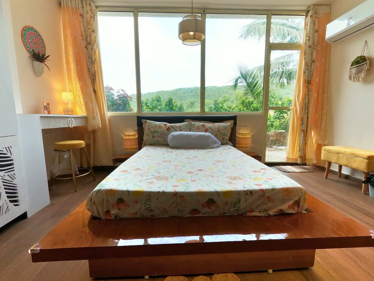 Welcome to Bohobnb, where comfort meets bohemian charm! Nestled in heart of Siolim, our 1-bedroom duplex apartment offers a unique stay with an attic and a private terrace. Surrounded by lush greenery, this home provides beautiful views that ensure peace and tranquility in a gated community with all the modern amenities including elevator, swimming pool, High-speed WiFi. Whether you're relaxing in the attic or soaking up the sun on the private terrace, every moment promises peace and comfort.