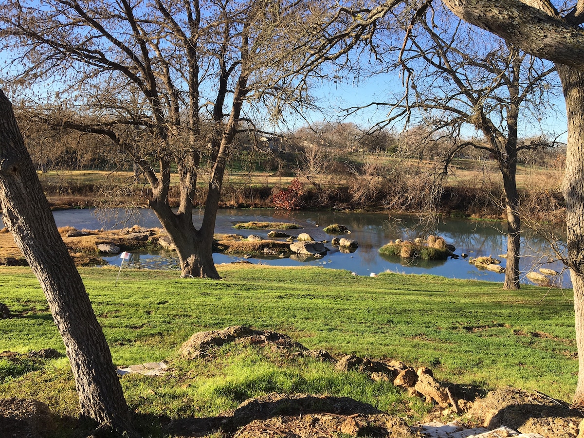 這是一個明亮、更新和乾淨的房源,佔地5英畝,擁有300英尺的聖馬科斯河濱。 該房源非常適合有棋盤遊戲、巨型jenga、connect4的家庭。 車庫設有乒乓球、飛鏢和桌上足球。 室外有忍者球場、休閒線、皮劃艇等。 河流通道非常完美,入口淺和緩坡,腰部深水。 河流溫和,附近有天然泉水,全年保持清新乾淨 距離德州州立大學僅15分鐘