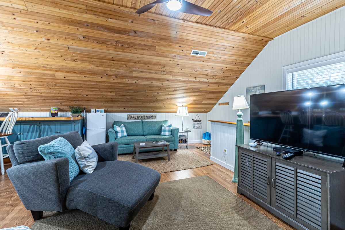 這是您下一趟海灘度假的完美套房! 距離最近的海灘約半英里。 我們舒適的海灘主題客房套房附設獨立起居空間(類似於複式公寓或孝親房),並設有獨立入口。它藏在森林中,就在小溪對面,準備好迎接您! 我們在啟動Airbnb僅一個月後就遭受了風暴破壞,因此已經翻新了兩次!