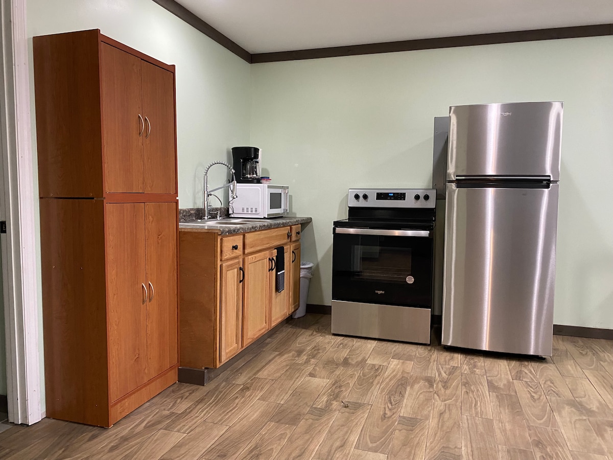 • 1間臥室,具備鄉村風情、開放式佈局和工作空間 • 配備雨淋式淋浴間和高級設備的現代化浴室 •設備齊全的廚房,配有餐具和冰箱 •有遮蔭的前門廊,可供放鬆或遙距工作 •安靜的小鎮環境,距離佐治亞州奧爾巴尼30分鐘 • 非常適合長期住宿,適合遙距工作者、旅行護士或承包商 •這是A單位—為工作人員或團體住宿預訂兩個單位 •快速Wi-Fi和月租折扣:發送訊息了解詳情
