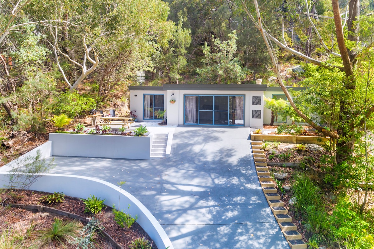 位於Nelson Beach的非常受歡迎的Air B and B。 開車3分鐘即可抵達Coles和當地商店,包括Phoebe 's Kitchen。 很抱歉,不適合兒童入住。 不可攜帶寵物。 你會發現自己身處一個與自然保護區相連的物業,這裏有很多鳥類、袋鼠,偶爾還會有針鼠。 享受寬敞的後院,包括一個很棒的火坑! 白沙步行到海姆斯海灘就在你家門口。 這是不容錯過的體驗! 關注我們的Nelson 's Oasis Jervis Bay