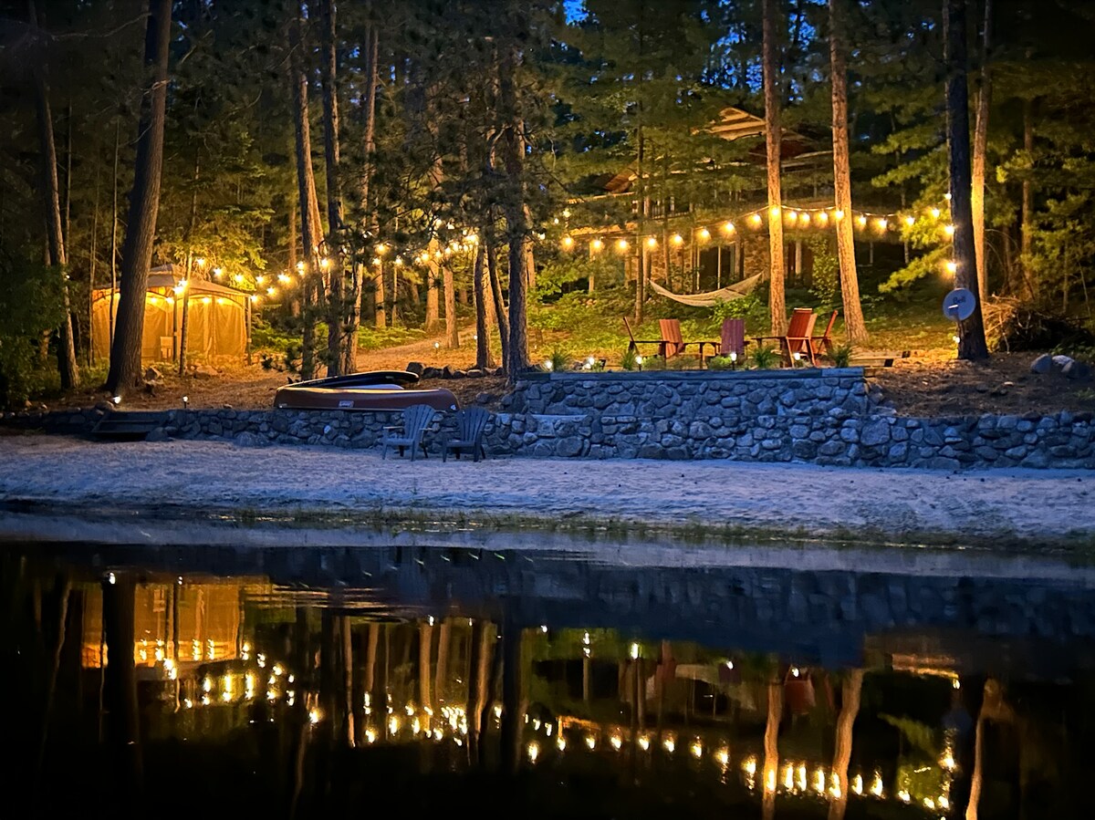 在這個難忘的河畔度假勝地,與大自然和彼此重新建立聯繫。 令人驚嘆的圓頂露營體驗等著您……在星空下睡覺,俯瞰寧靜的河流,在自己的私人碼頭(季節性)品嚐晨間咖啡,準備以所有最佳方式放鬆身心。 請記住,您將會超級露營,因此預期會有蟲子和戶外廁所等露營東西:),冬季可能會很冷,夏季可能會很熱。