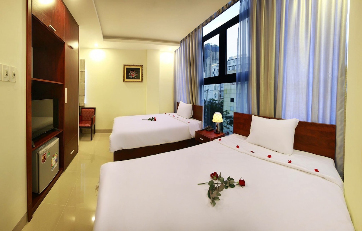 A cozy room with a window in a luxury hotel - 150m from My Khe beach - The beach voted by Forbes as the most attractive on the planet - 2km from Dragon Bridge, Han River Bridge, located in the busiest tourist area of Da Nang - An Thuong, so it is close to famous entertainment and dining spots, extremely convenient for you to explore Da Nang city - Located on a street far from the main road, so it is very quiet for you to sleep well - Outdoor swimming pool and gym on the top floor