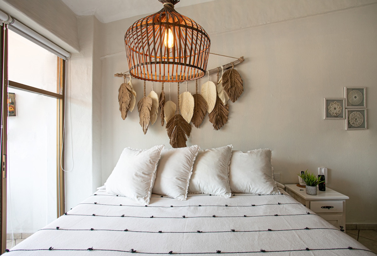 距離海灘僅幾步之遙的🏖寬敞單間公寓–體驗正宗的巴亞爾塔! 🌴 包括1間配備空調的臥室、60英寸電視、全套廚房、配備熱水淋浴的浴室、客廳、用餐區域和私人露臺,供您在戶外放鬆身心。 享受超高速WiFi ,非常適合遠距工作。 靠近浪漫區、飯店區、Malecón和很棒的餐廳和咖啡廳。 步行前往任何地方,享受正宗的巴亞爾塔,同時入住安靜、時尚、設備齊全的空間。 非常適合情侶或獨自旅行者。
