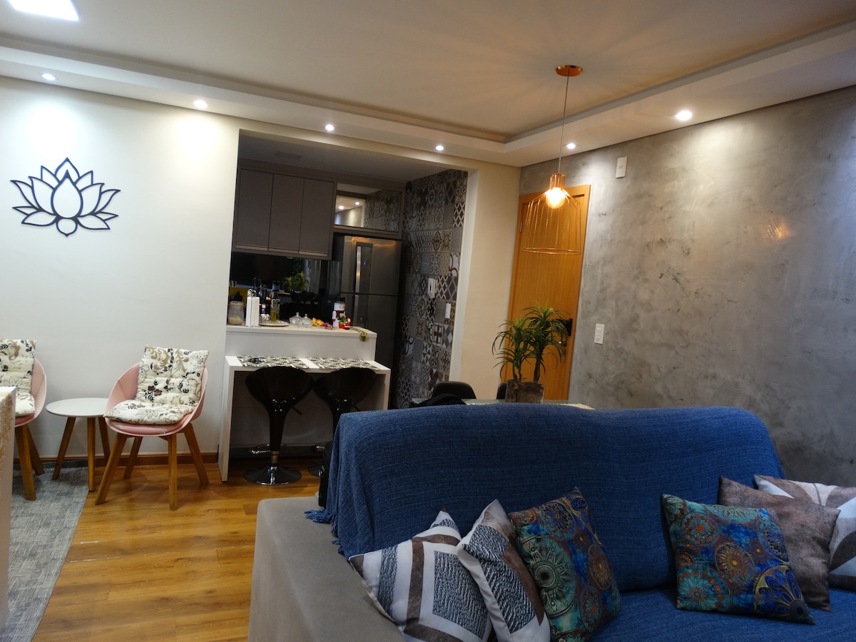 現代、溫馨和設備精良的Apê in Cambé ,方便前往UEL、Expo Londrina、Shopping Catuaí、Gleba Palhano和Londrina的中心地區。 2間臥室( 1張雙人床+ 2張單人床) ,最多可入住4人。 它配有洗衣機和烘乾機、可控制的天花板風扇、快速Wi-Fi、配有應用程式的智能電視(使用您的登入)和配有電力和餐具的全功能廚房。 非常適合短期或長期住宿。 旅居主人為你精心準備了一切,讓你即使遠離家鄉,亦能感受到家的溫馨。💛
