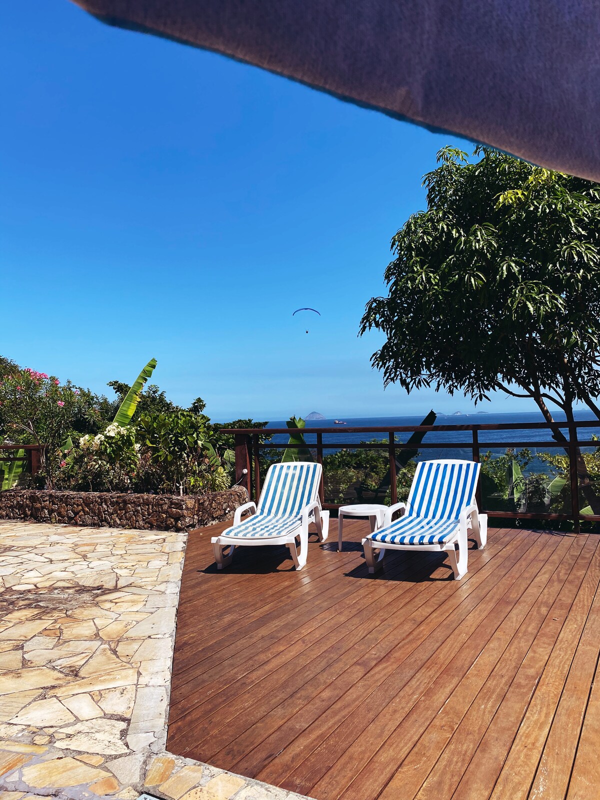Imagine yourself facing the most spectacular view of Rio de Janeiro, its bay, the touristic wonders of The Sugar Loaf & The Christ, between the Tropical forest and the exciting urban life, in a very confortable apartment located on an independent floor of our house, with many terraces, a garden full of fruit trees (mango, banana, acerola, passion fruit, tangerine, graviola, amora), relaxing in a swimming pool or having a nice barbecue with your friends. Welcome to our little paradise!