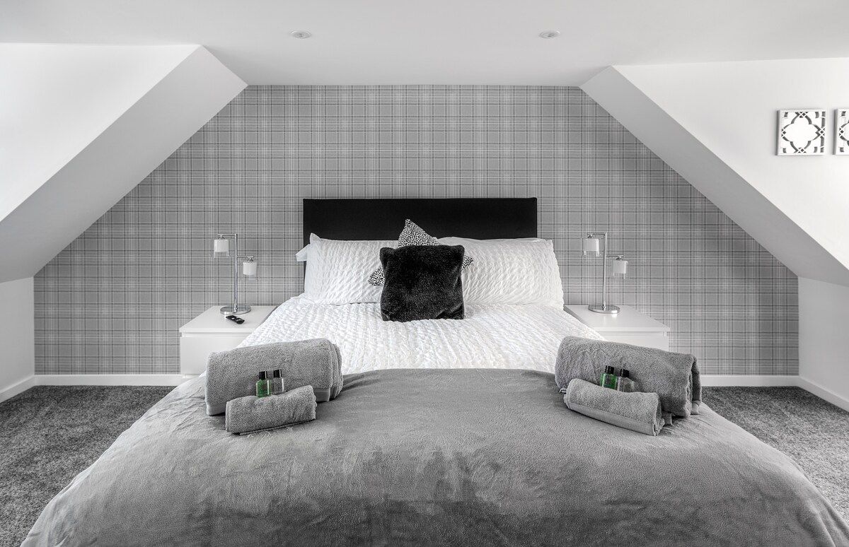在Kintyre的大西洋海岸放鬆舒適的度假勝地。 現代舒適,設計時尚,開放式起居空間、地暖、燃木爐、設備齊全的廚房、步入式淋浴間、豪華浴室、套房雙人房和寬敞的雙人房,兩者均可欣賞山丘對面的海景。 探索海灘和步行、高爾夫、衝浪或游泳、吃得好、放鬆和享受日落。距離坎貝爾敦15分鐘,當地商店、餐廳和釀酒廠豐富多樣