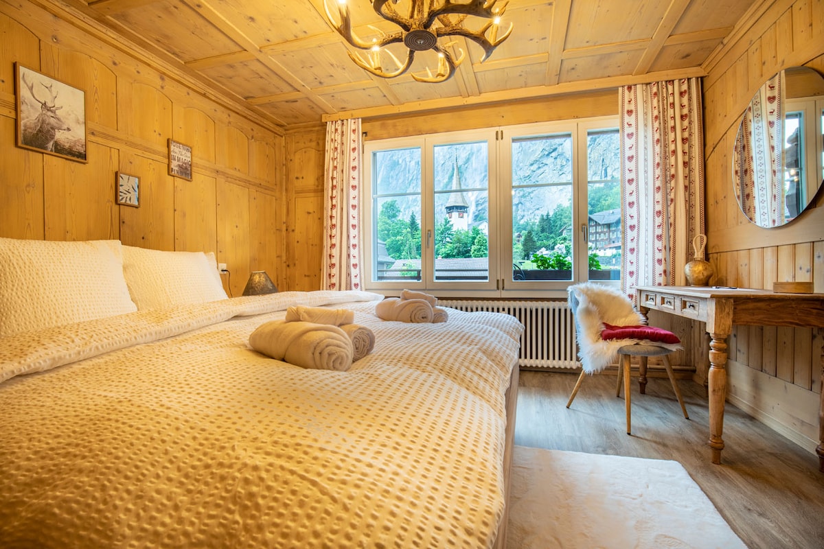 🤩在Chalet Pironnet喚醒新的一天,欣賞勞特布倫嫩最受歡迎的世界名景:瀑布、山脈和教堂 🥗 步行即可到達餐廳、咖啡廳和商店 🧺 全新應用程式操作的洗衣房 🚌步行1分鐘即可到達巴士站 🚶♂️步行7分鐘(或巴士)即可抵達火車、纜車和超市 🚗 主幹道上有免費預留泊車位 🛌 豪華特大床 🧳 免費行李寄存 ⏲️ 旅居主人回覆迅速,滿足你的所有需求