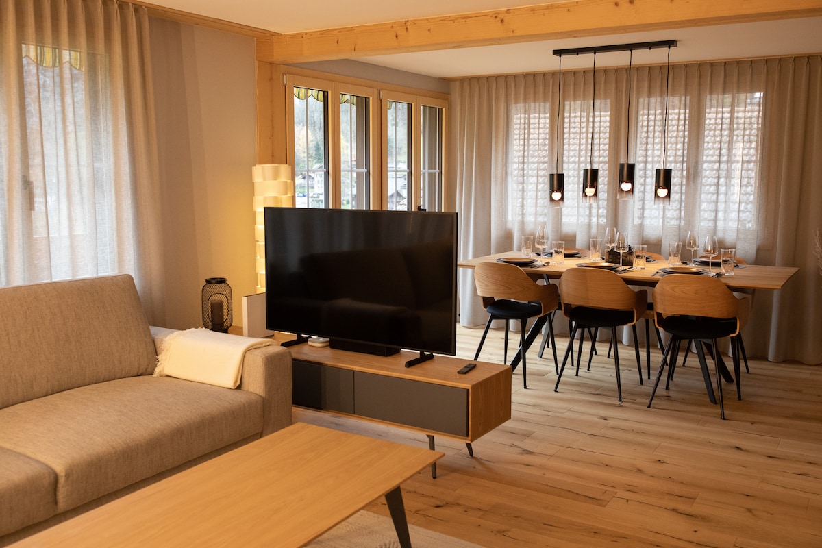 我們的公寓名為Truemmelbach。它位於勞特布倫嫩山谷,就在阿爾卑斯山最高的瀑布旁邊。 Lauterbrunnen是Jungfrau地區的一部分。周圍有著名的山脈,如少女峰、艾格峰和雪朗峰。 您將入住3樓瑞士小木屋的一樓。 從巨大的私人露臺上,面向南方,您可以欣賞到瑞士山脈最壯觀的景色,您只會聽到牛鈴、綿羊和鳥鳴。