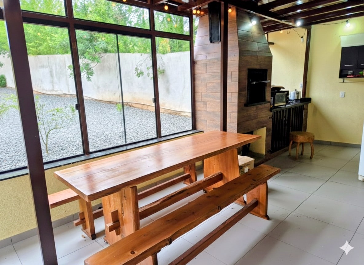 售貨亭提供: - Wi-Fi; - 烤肉架; - 遊樂場; - 烤箱和燃木爐; - 工業用 2 口瓦斯爐; -湖景; - 可收穫含羞草、松子和玉米(視季節而定); - 雙層冰箱; - 2 間帶熱水淋浴的浴室; 售貨亭內容量:24 人坐位。 允許釣魚 🎣 禁止使用漁網和拖網 🚫 (沒有床可供睡覺)。 活動空間。(日間使用) 入住和退房時間待定。