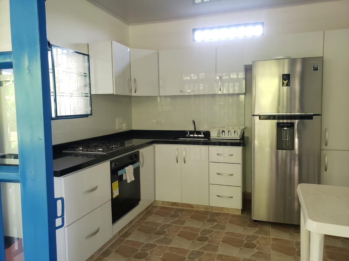 Casa esquinera en Rivera, Huila. Garaje doble, 2 habitaciones con Smart TV (4 camas), sala, cocina integral con nevera, patio, lavadora y corredor techado para 3 hamacas disponibles. Diseño contemporáneo inspirado en rompecabezas artísticos. Fachada distintiva: pino San Jorge, reja antracita y malla negra. Entorno privilegiado: aire puro, ambiente tranquilo y limpieza hospitalaria garantizada.
