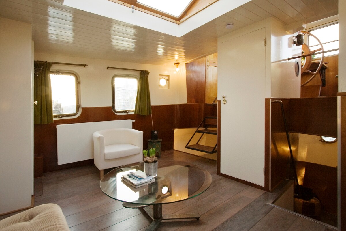 完美的浪漫二人假期,放鬆身心,享受私人桑拿和家庭影院。 香檳、玫瑰葉、朱古力和小食選擇。 有人稱它為「愛情之船」 (有些人會選擇與好友一起放鬆身心) 你將入住一艘最近翻新的前貨船,並可在阿姆斯特丹的IJmeer私人停泊! 想出去嗎?乘電車前往中央車站不到15分鐘,每6分鐘一班,直至00.30 包含早餐套餐