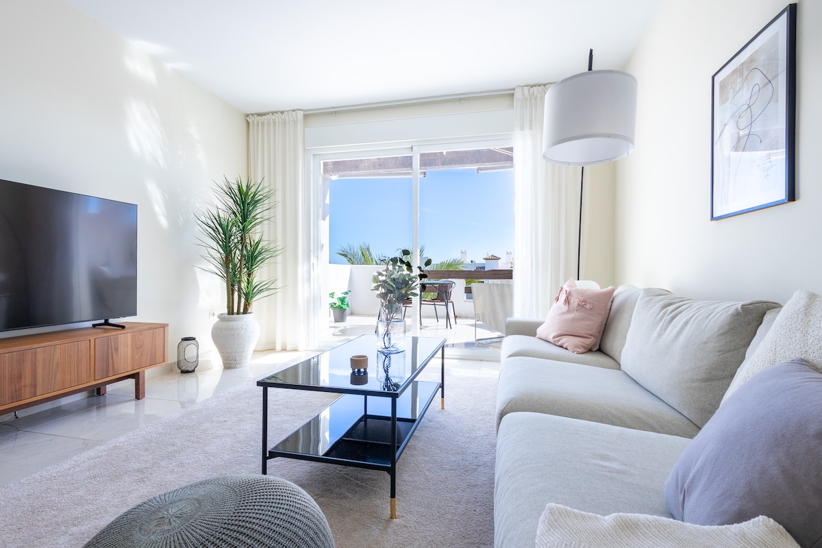 入住位於寧靜的埃斯特波納社區的全新現代兩房公寓,體驗奢華。這個空間配備全套空調、高速網路和寬敞的露台,讓您放鬆身心。可使用大樓內的公共泳池。距離海灘和當地設施僅幾步之遙,為您在太陽海岸的住宿提供舒適與便利的完美結合。